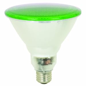 Compact Fluorescent Outdoor PAR38 Reflector, GreenThis weather proof, energy saving CFL light bulb replaces a standard 100 watt bulb flood light. The design can be used both indoors and outdoors and is great for landscape accent lighting. This Green Par38 ecobulb uses only 20 watts of power and has an impressive average lifespan of 8,000 hours. Please note: do not use with dimming devices. One CFL bulb per pack. Price is for one CFL light bulb.