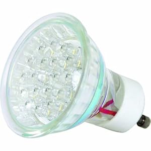 20-Leds, accent gu10 base, 120V, 90-Percent more efficient than incandescent and halogen, long lasting up to 30,000 hours, mercury free, no UV emissions, resists shock and vibration, cool running and silent, lifetime not shortened by frequent on/off switching.Feit BPMR16/GU10/LED 1 Watt GU 10 Base 21 LED Light BulbFeit BPMR16/GU10/LED 1 Watt GU 10 Base 21 LED Light Bulb Features:;Light bulb;30,000 life hours;GU 10 base;1 watt;21 LED;120 volt;Ideal for accent lighting;Not intended for general purpose lighting